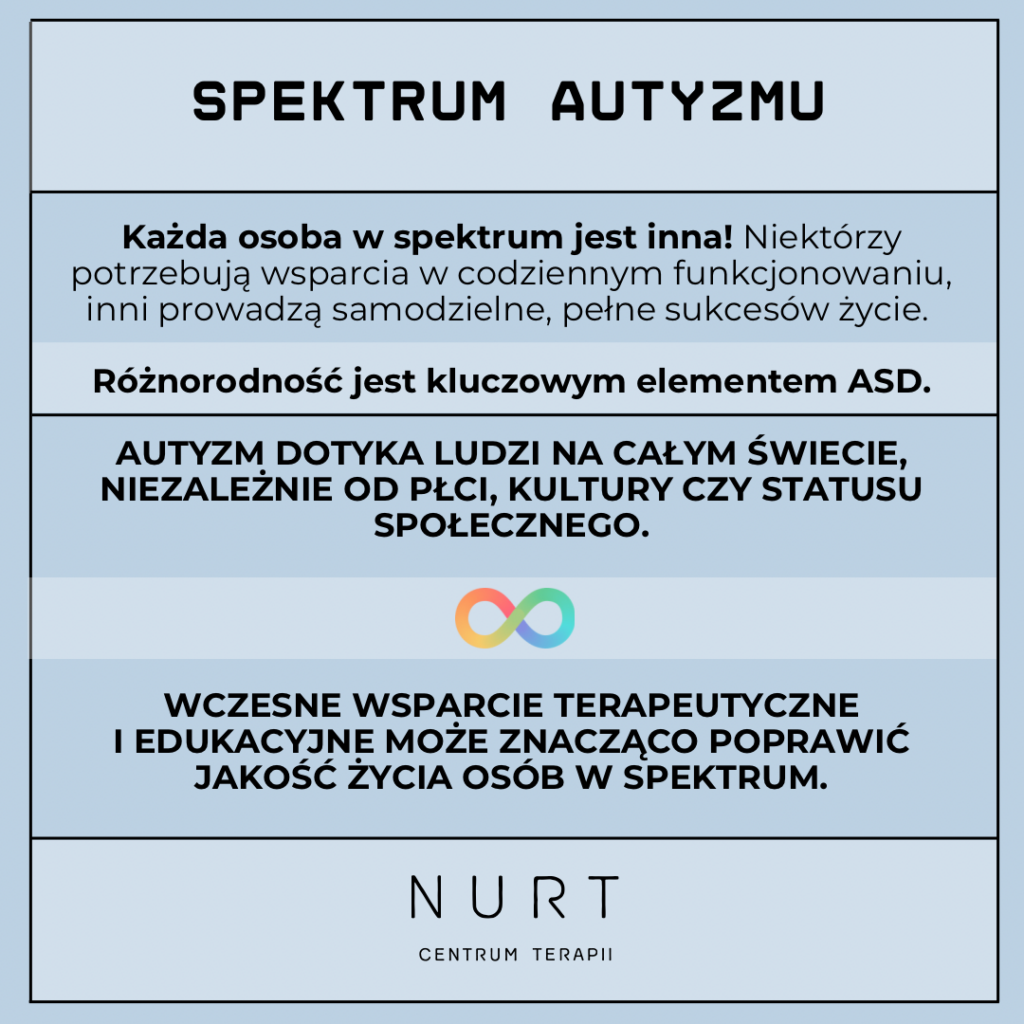 Autyzm to spektrum zaburzeń rozwojowych, które obejmuje szeroki zakres objawów i intensywności. Osoby z autyzmem mogą doświadczać różnorodnych trudności, w tym problemów z komunikowaniem się, interakcjami społecznymi czy stereotypowymi zachowaniami. Warto podkreślić, że autyzm jest zaburzeniem o szerokim wachlarzu objawów. Każda osoba ma inne potrzeby, talenty, wyzwania oraz sposób przetwarzania informacji. Właśnie dlatego tak ważne jest, aby wspierać indywidualne podejście do każdej osoby w ramach spektrum autyzmu.